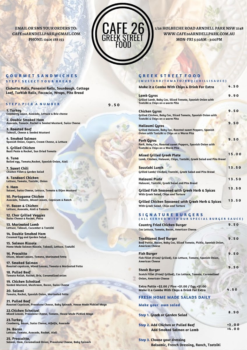 Cafe 26 Arndell Park Menu